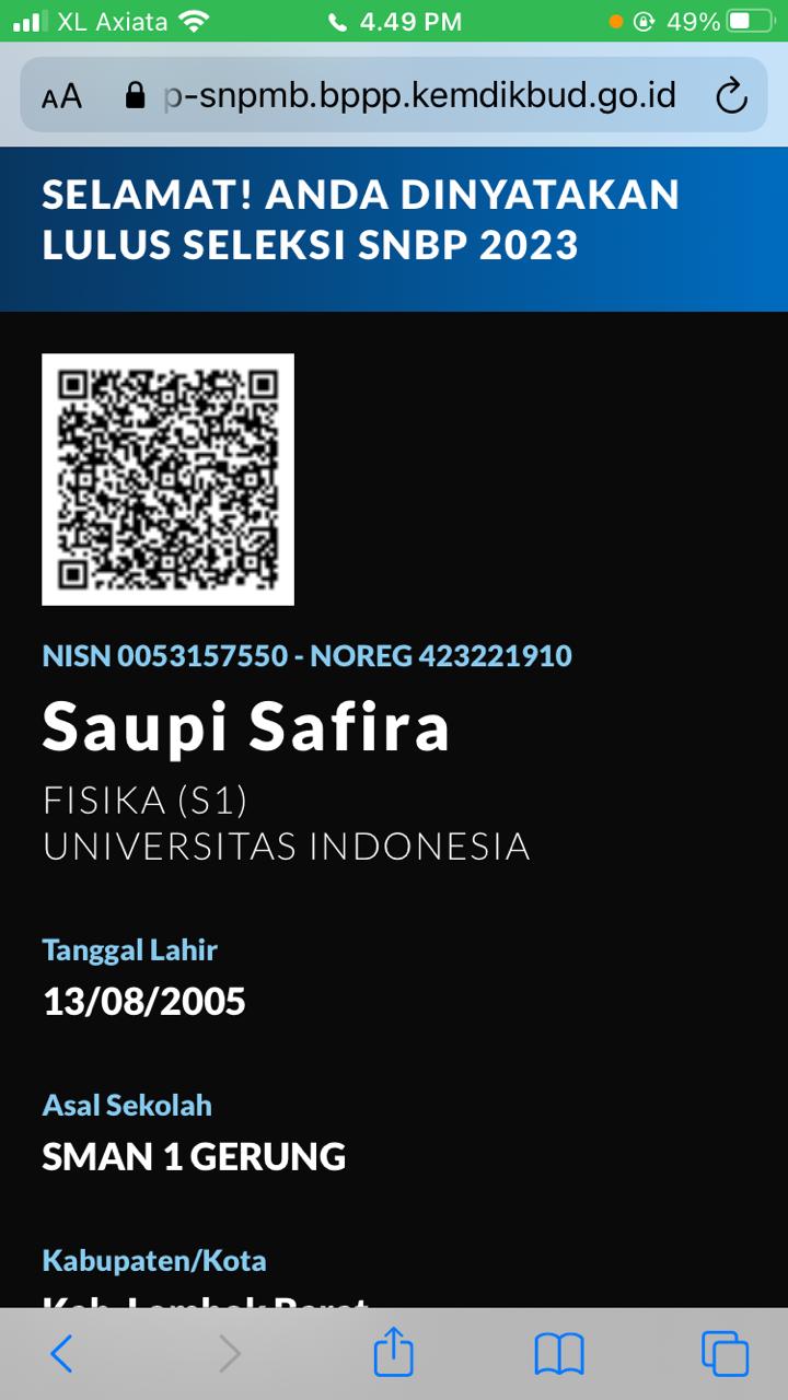 1. Saupi Safira ( MIPA 6) (Fisika S1 Universitas Indonesia)